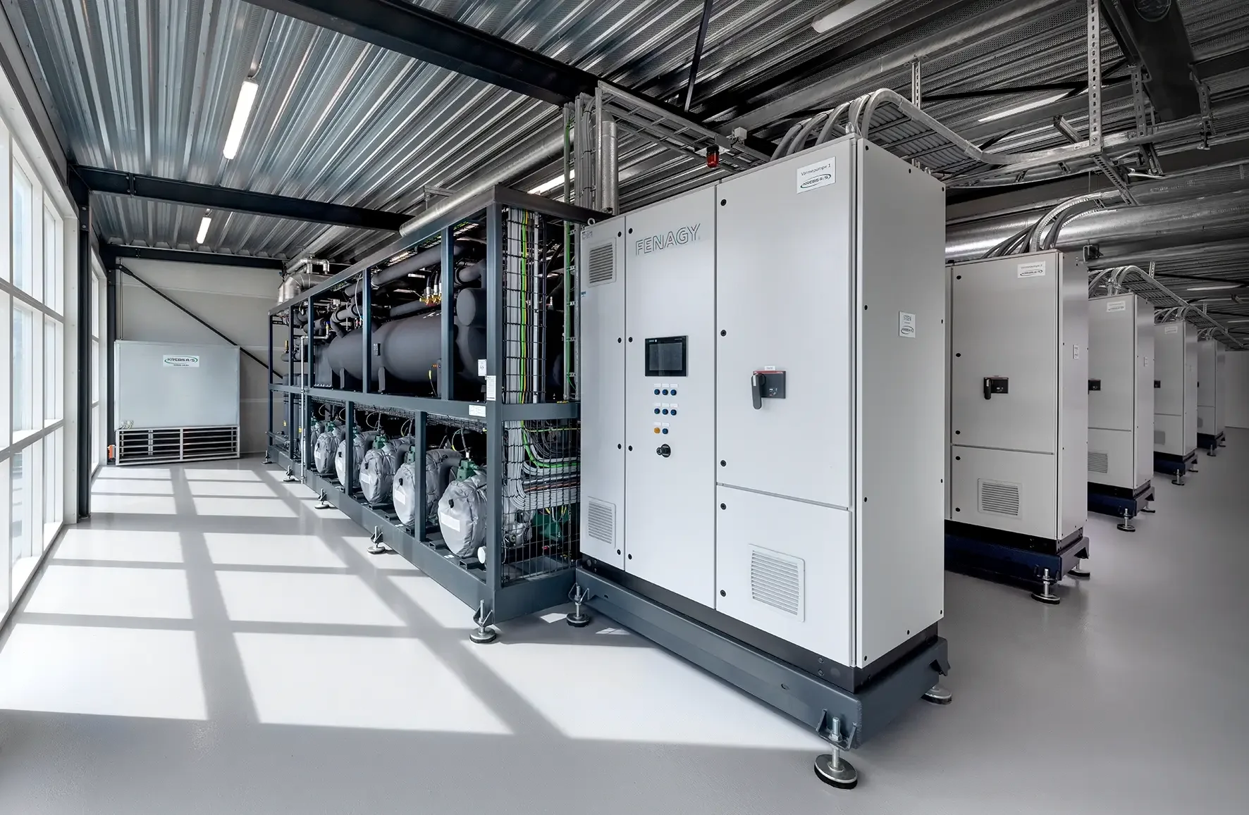 At Fenagy we continuously strive for excellence in optimizing the usage of all available resources through innovative solutions. That is exactly why we developed a combined heating and cooling solution in order to obtain benefits from both sources. This is particularly useful in certain industries. For example, in data centres, the surplus heat generated from cooling the server rooms can be supplied to district heating networks in cities or used to heat large adjacent buildings such as greenhouses if the installation is adjusted to accommodate such a setup.