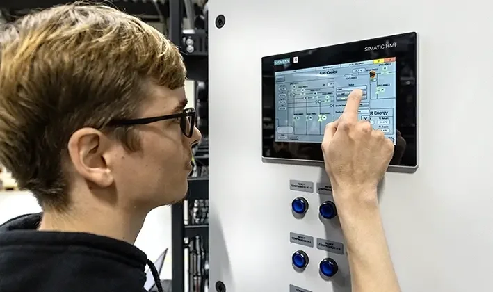 Hele serien anvender en standard Siemens PLC-controller, og Fenagy har udviklet sine egne PLC-algoritmer til de mest essentielle funktioner for at sikre optimal kontrol og overvågning. Vores PLC-løsninger kan kommunikere med de fleste af de platforme, som kunden har brug for at kommunikere med. Det indbyggede HMI-panel giver mulighed for direkte overvågning af systemet og dets driftsbetingelser. Desuden understøtter vores PLC-løsninger flere kommunikations-protokoller og kan integreres med det overordnede SCADA-system.