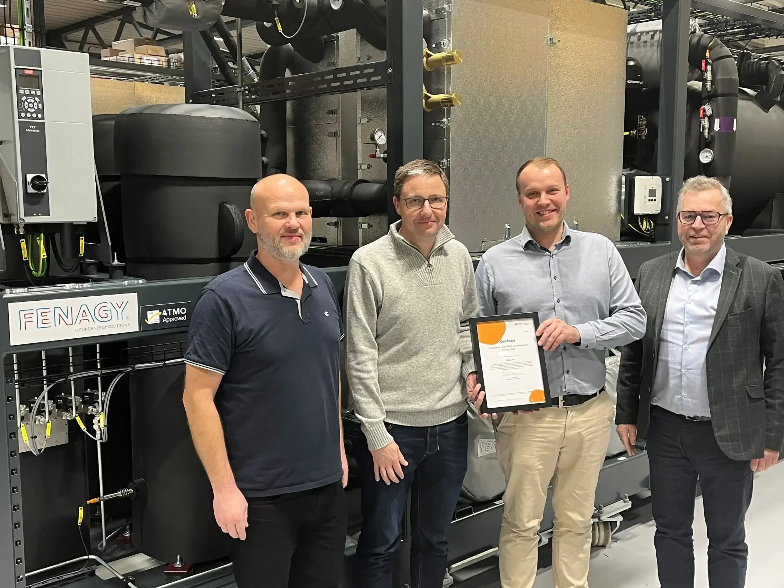 Hos Fenagy forstår vi, at cybersikkerhed er afgørende for sikker og effektiv drift af moderne energiløsninger. Derfor er vi stolte over at have opnået NIS2-certifikatet, som viser, at vi overholder det nyeste europæiske direktiv for sikring af kritisk infrastruktur. Dermed er Fenagys varmepumper og køleanlæg beskyttet mod digitale trusler, så din drift fortsat er både sikker og pålidelig.
