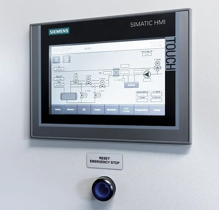 Fenagy’s control system, controlling all parts of the heat pump. The hardware platform is Siemens S7.